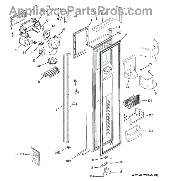 The Ice Door Assembly is an OEM part for GE refrigerators. It is integral to the ice dispenser system, controlling access to the ice chute. This component ensures the efficient delivery of ice cubes or crushed ice when activated and seals off the chute when not in use to maintain the freezer's temperature and prevent frost buildup.