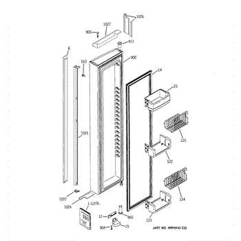 The Freezer Door Gasket is an OEM part for GE refrigerators. It forms a seal around the freezer door to prevent warm air from entering and cold air from escaping, maintaining the internal temperature and efficiency of the appliance. It measures 24 inches wide by 20 inches high.