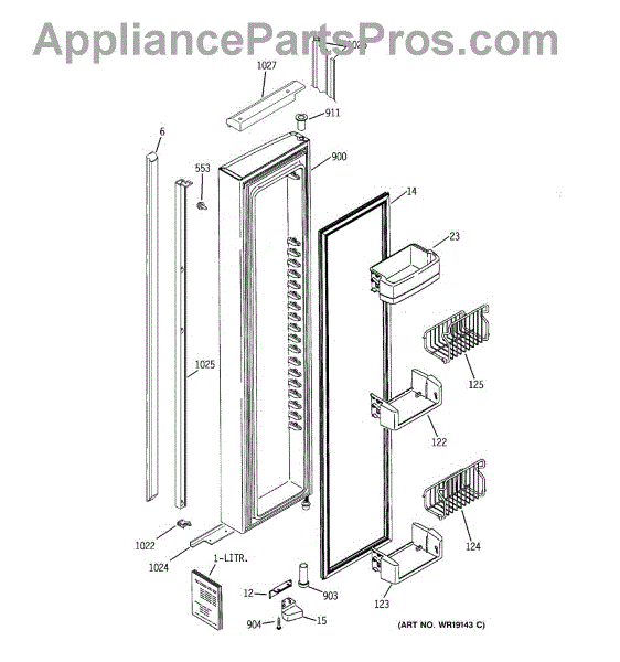 The Freezer Door Lower Hinge Bushing is an OEM replacement part for GE refrigerators. It is a component located within the freezer door hinge. Causes of failure typically involve normal wear over extended use. Refrigerator doors experience frequent adjustment which can deteriorate hinge bushings. Symptoms of a bad lower hinge bushing include: