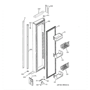 The Freezer Door Gasket is an OEM part for GE refrigerators. It forms a seal around the freezer door to prevent warm air from entering and cold air from escaping, maintaining the internal temperature and efficiency of the appliance. It measures 24 inches wide by 20 inches high.