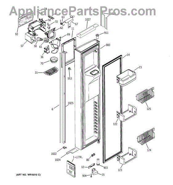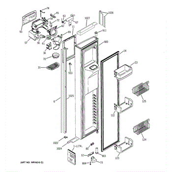 The Ice Door Assembly is an OEM part for GE refrigerators. It is integral to the ice dispenser system, controlling access to the ice chute. This component ensures the efficient delivery of ice cubes or crushed ice when activated and seals off the chute when not in use to maintain the freezer's temperature and prevent frost buildup.
