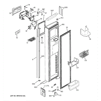 The Ice Door Assembly is an OEM part for GE refrigerators. It is integral to the ice dispenser system, controlling access to the ice chute. This component ensures the efficient delivery of ice cubes or crushed ice when activated and seals off the chute when not in use to maintain the freezer's temperature and prevent frost buildup.