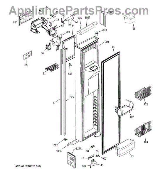 The Refrigerator Dispenser Arm Kit is an OEM component for GE French door refrigerator models. This kit contains the arm mechanism responsible for dispensing ice and water from the external dispenser tap. Proper functioning of the dispenser arm allows for effortless access to ice and water directly from the refrigerator door. Over time, cold temperatures, mineral deposits, and high usage can cause mechanical failure. Symptoms of a problematic refrigerator dispenser arm kit include: