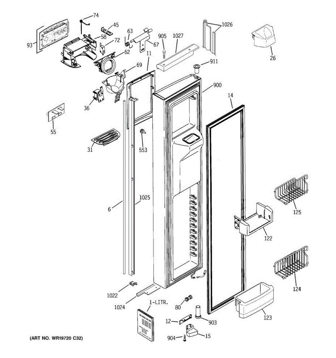 Ice dispenser door assembly seals the ice chute opening on your refrigerator. Replace if cracked, warped, or the rubber gasket is damaged and leaking air.