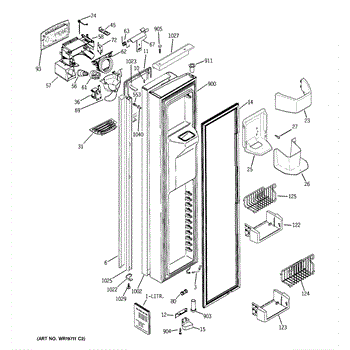 The Ice Door Assembly is an OEM part for GE refrigerators. It is integral to the ice dispenser system, controlling access to the ice chute. This component ensures the efficient delivery of ice cubes or crushed ice when activated and seals off the chute when not in use to maintain the freezer's temperature and prevent frost buildup.