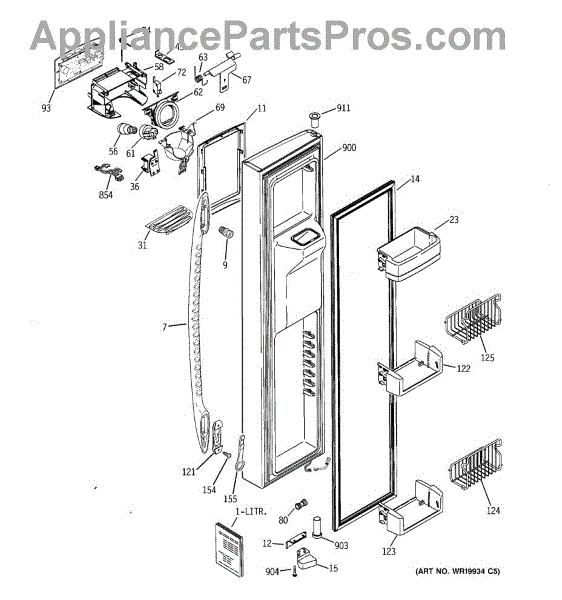 The Door Recess Spring is an OEM replacement part for GE side-by-side refrigerators. It sits within the icemaker door frame to control movement and allow smooth closing/opening of the access point.