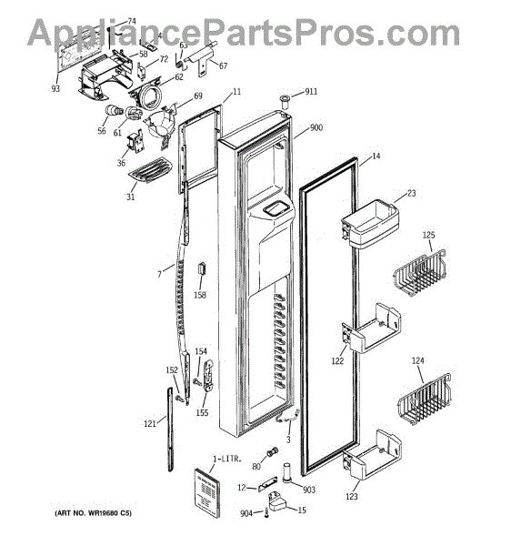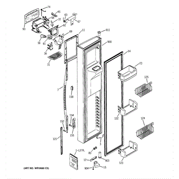 The Door Recess Spring is an OEM replacement part for GE side-by-side refrigerators. It sits within the icemaker door frame to control movement and allow smooth closing/opening of the access point.