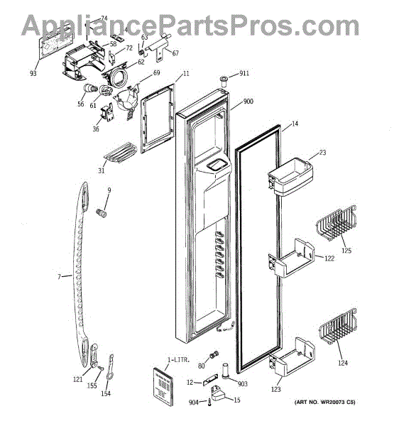 Parts for Ge PSK25NGSECCC: 01 - Freezer Door Parts
