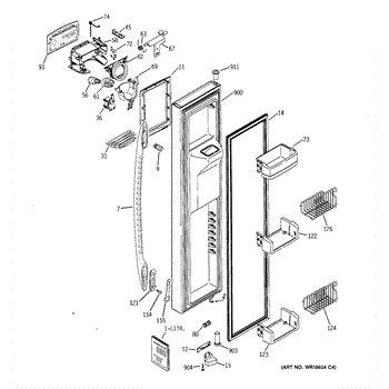 The Door Recess Spring is an OEM replacement part for GE side-by-side refrigerators. It sits within the icemaker door frame to control movement and allow smooth closing/opening of the access point.