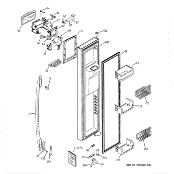 The Door Recess Spring is an OEM replacement part for GE side-by-side refrigerators. It sits within the icemaker door frame to control movement and allow smooth closing/opening of the access point.
