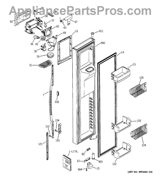 The Ice Door Assembly is an OEM part for GE refrigerators. It is integral to the ice dispenser system, controlling access to the ice chute. This component ensures the efficient delivery of ice cubes or crushed ice when activated and seals off the chute when not in use to maintain the freezer's temperature and prevent frost buildup.