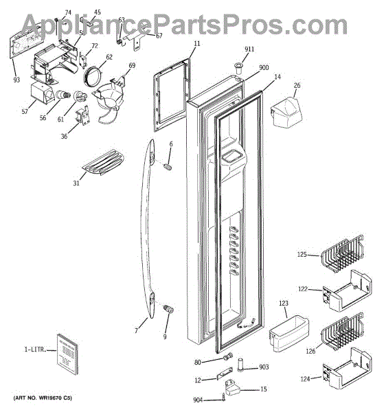 The Refrigerator Dispenser Arm Kit is an OEM component for GE French door refrigerator models. This kit contains the arm mechanism responsible for dispensing ice and water from the external dispenser tap. Proper functioning of the dispenser arm allows for effortless access to ice and water directly from the refrigerator door. Over time, cold temperatures, mineral deposits, and high usage can cause mechanical failure. Symptoms of a problematic refrigerator dispenser arm kit include: