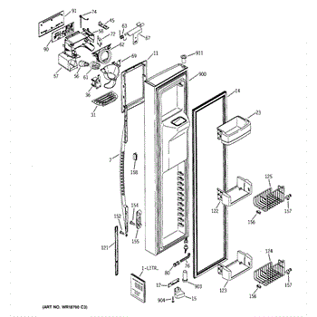 The Door Recess Spring is an OEM replacement part for GE side-by-side refrigerators. It sits within the icemaker door frame to control movement and allow smooth closing/opening of the access point.