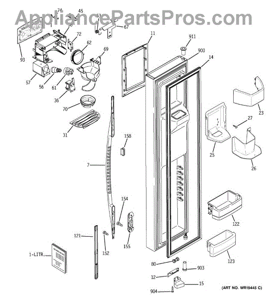 The Ice Door Assembly is an OEM part for GE refrigerators. It is integral to the ice dispenser system, controlling access to the ice chute. This component ensures the efficient delivery of ice cubes or crushed ice when activated and seals off the chute when not in use to maintain the freezer's temperature and prevent frost buildup.