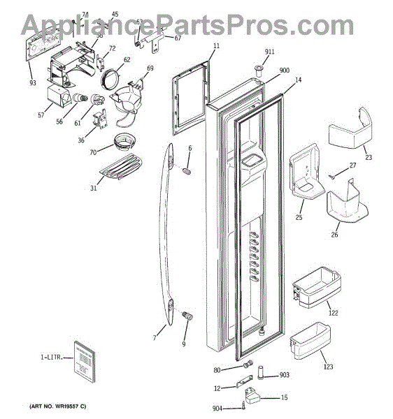 The Dispenser Lever is an OEM part for GE refrigerators. It is located on the front panel of the refrigerator and is responsible for activating the dispenser mechanism. When pressed, it engages the internal mechanisms to dispense ice or water into a glass or container.