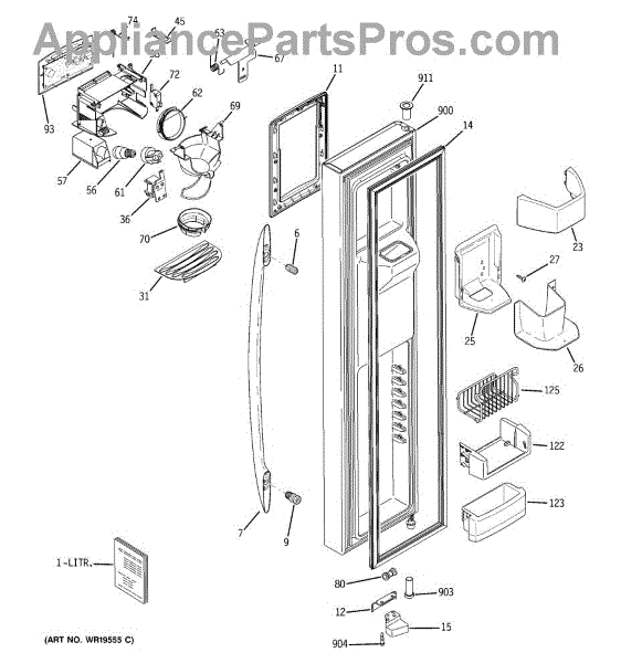 The Dispenser Lever is an OEM part for GE refrigerators. It is located on the front panel of the refrigerator and is responsible for activating the dispenser mechanism. When pressed, it engages the internal mechanisms to dispense ice or water into a glass or container.
