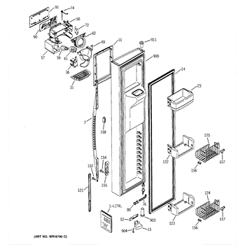 The Fresh Food Door Closure Cam is an OEM replacement part for GE refrigerators. It is a component located inside the fresh food door that works together with the door latch mechanism. The door closure cam has a pivoting arm that engages the latch to securely fasten the door shut when closed. For the same part in white, purchase WR02X10637.