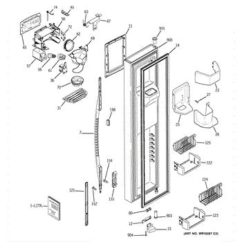 The Ice Door Assembly is an OEM part for GE refrigerators. It is integral to the ice dispenser system, controlling access to the ice chute. This component ensures the efficient delivery of ice cubes or crushed ice when activated and seals off the chute when not in use to maintain the freezer's temperature and prevent frost buildup.