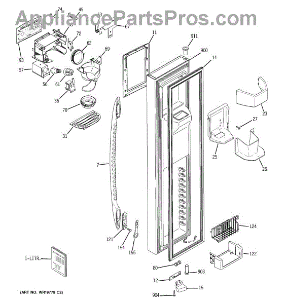 The Ice Door Assembly is an OEM part for GE refrigerators. It is integral to the ice dispenser system, controlling access to the ice chute. This component ensures the efficient delivery of ice cubes or crushed ice when activated and seals off the chute when not in use to maintain the freezer's temperature and prevent frost buildup.