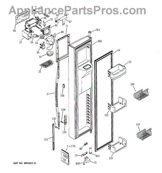 The Ice Door Assembly is an OEM part for GE refrigerators. It is integral to the ice dispenser system, controlling access to the ice chute. This component ensures the efficient delivery of ice cubes or crushed ice when activated and seals off the chute when not in use to maintain the freezer's temperature and prevent frost buildup.