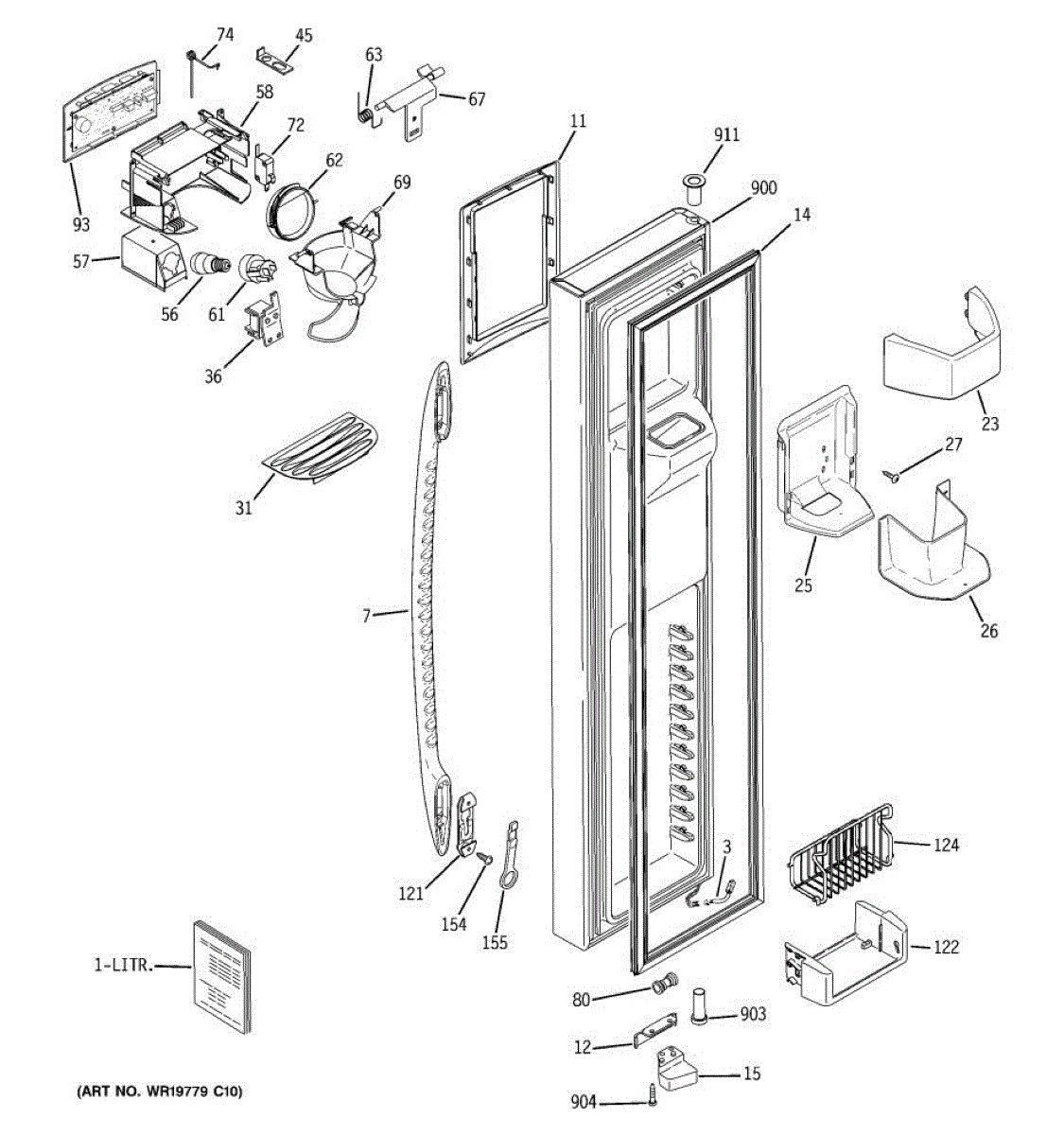 Ice dispenser door assembly seals the ice chute opening on your refrigerator. Replace if cracked, warped, or the rubber gasket is damaged and leaking air.