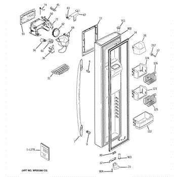 The Ice Door Assembly is an OEM part for GE refrigerators. It is integral to the ice dispenser system, controlling access to the ice chute. This component ensures the efficient delivery of ice cubes or crushed ice when activated and seals off the chute when not in use to maintain the freezer's temperature and prevent frost buildup.
