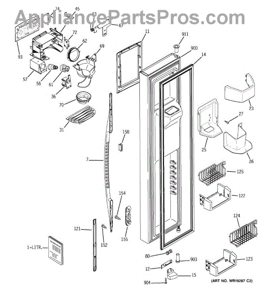 Ice dispenser door assembly seals the ice chute opening on your refrigerator. Replace if cracked, warped, or the rubber gasket is damaged and leaking air.