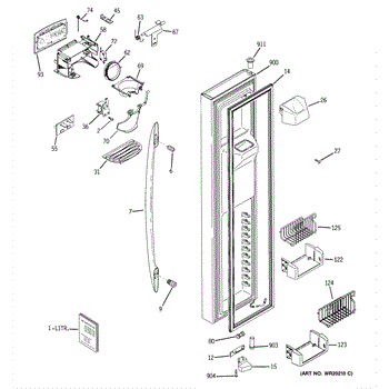 The Door Recess Spring is an OEM replacement part for GE side-by-side refrigerators. It sits within the icemaker door frame to control movement and allow smooth closing/opening of the access point.