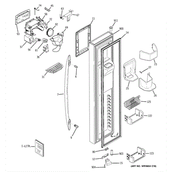 The Refrigerator Dispenser Arm Kit is an OEM component for GE French door refrigerator models. This kit contains the arm mechanism responsible for dispensing ice and water from the external dispenser tap. Proper functioning of the dispenser arm allows for effortless access to ice and water directly from the refrigerator door. Over time, cold temperatures, mineral deposits, and high usage can cause mechanical failure. Symptoms of a problematic refrigerator dispenser arm kit include: