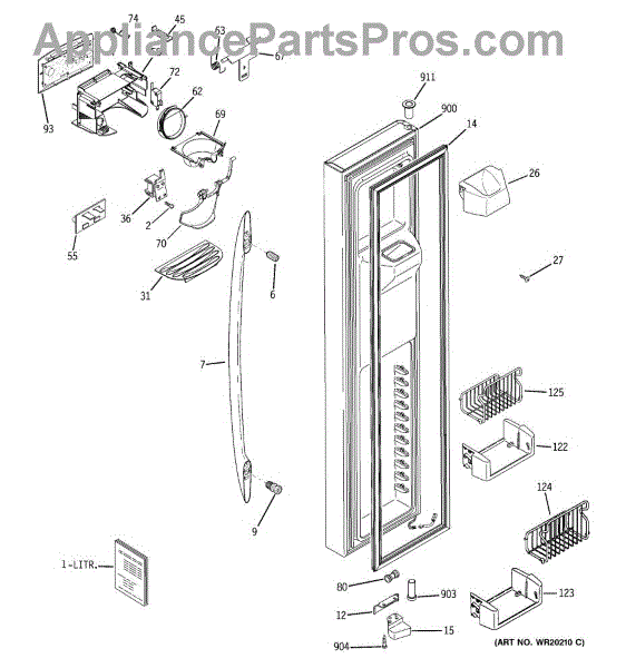 The Ice Door Assembly is an OEM part for GE refrigerators. It is integral to the ice dispenser system, controlling access to the ice chute. This component ensures the efficient delivery of ice cubes or crushed ice when activated and seals off the chute when not in use to maintain the freezer's temperature and prevent frost buildup.