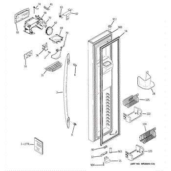 The Door Recess Spring is an OEM replacement part for GE side-by-side refrigerators. It sits within the icemaker door frame to control movement and allow smooth closing/opening of the access point.