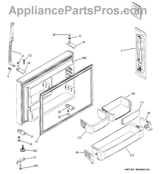 This freezer door gasket forms an airtight seal between the door and cabinet to keep cold air in and moisture out. Replacing a worn or damaged seal helps restore proper temperature, reduce frost, and improve energy efficiency.