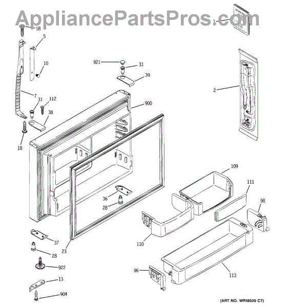 A replacement bottom door cap that restores the finished edge and support at the lower corner of the appliance door. Keeps the door looking complete and helps protect the hinge area from damage. What it does