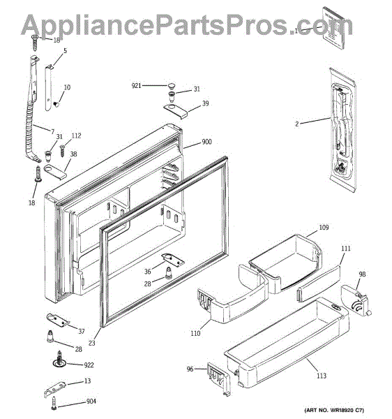 A replacement bottom door cap that restores the finished edge and support at the lower corner of the appliance door. Keeps the door looking complete and helps protect the hinge area from damage. What it does