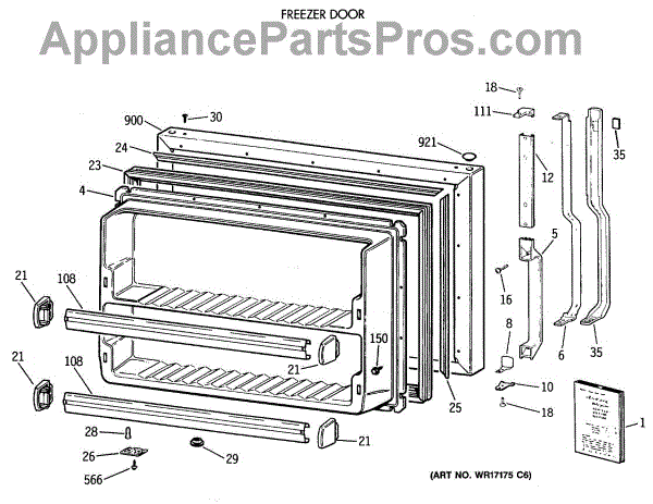 Parts for Ge TBE18DASTRWH: 01 - Freezer Door Parts