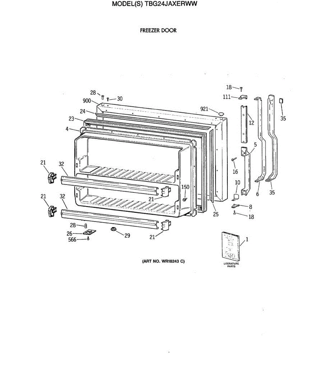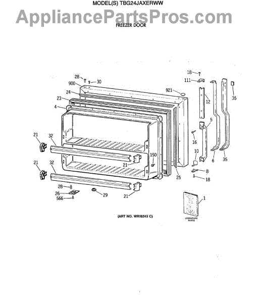 Parts for Ge TBG24JAXERWW: 06 - Freezer Door Parts