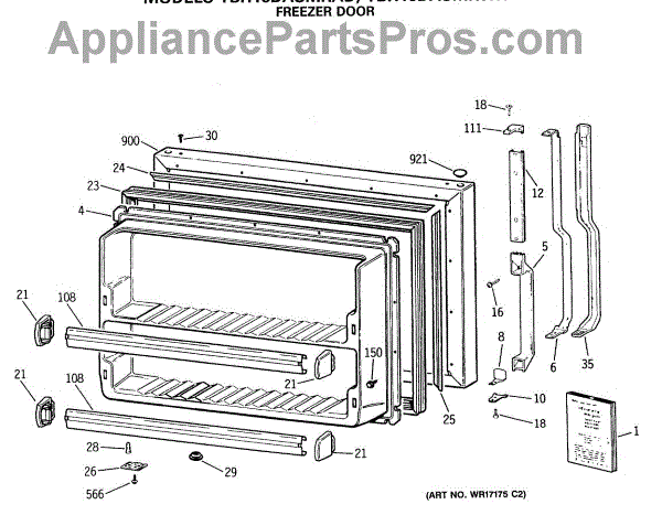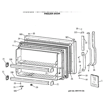 Parts for Ge TBH18DASMRWH: 01 - Freezer Door Parts