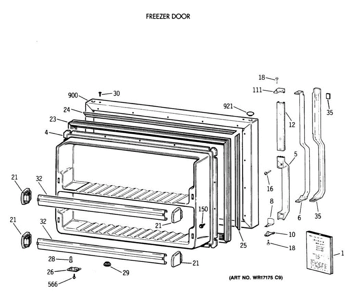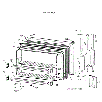 Parts for Ge TBH18DAXBRWW: 01 - Freezer Door Parts