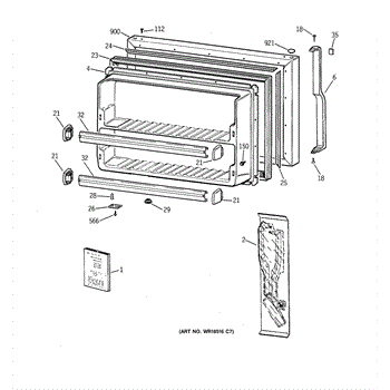 Parts for Ge TBH18JABNRWW: 01 - Freezer Door Parts