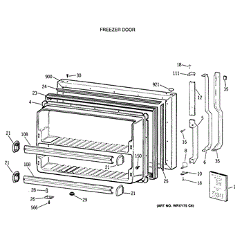 Parts for Ge TBH18JATERAD: 01 - Freezer Door Parts