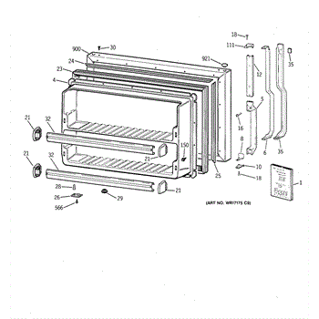Parts for Ge TBT18JAXURWW: 01 - Freezer Door Parts