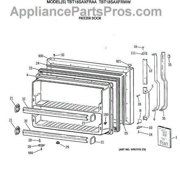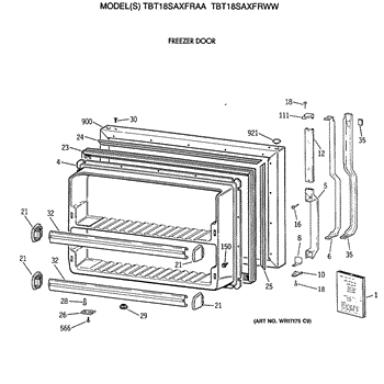 Parts for Ge TBT18SAXFRWW: 01 - Freezer Door Parts