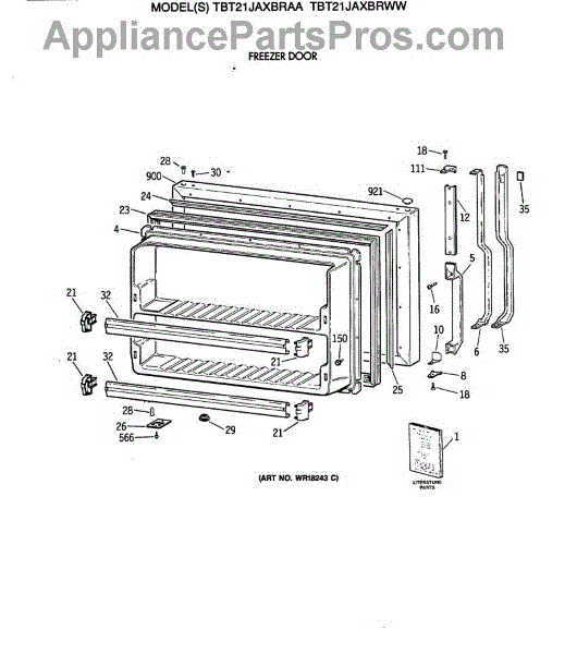 Parts for Ge TBT21JAXBRAA: 01 - Freezer Door Parts
