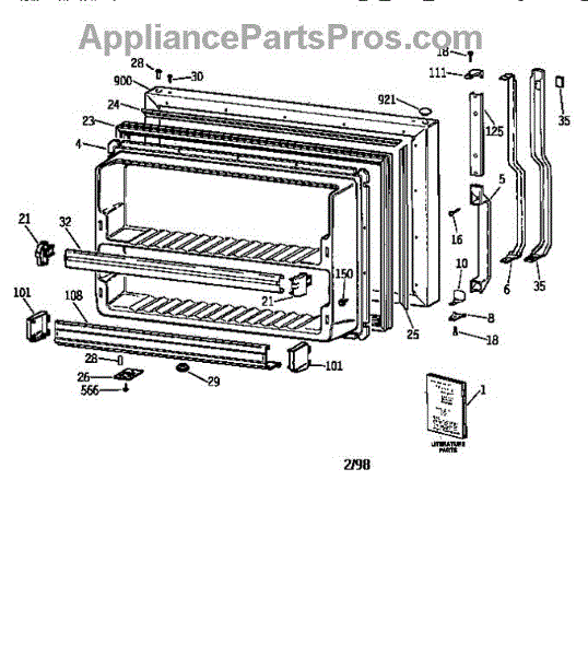 Parts for Ge TBT25JAXLRWW: Freezer Door Parts