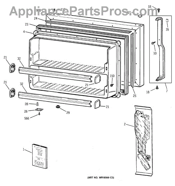 Parts for Ge TBX18CIBLRWW: 01 - Freezer Door Parts