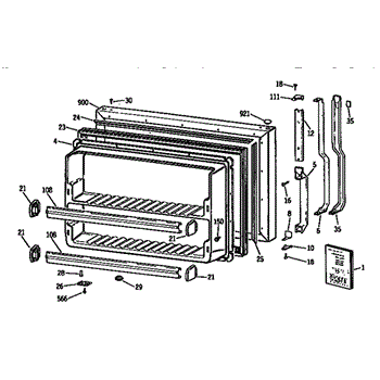 Parts for Ge TBX18DASJRWH: Freezer Door Parts