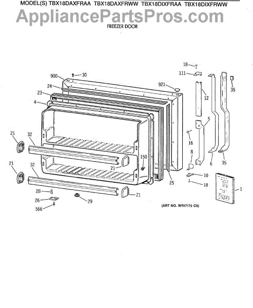 Parts for Ge TBX18DAXFRAA: 01 - Freezer Door Parts