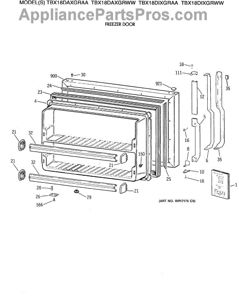 Parts for Ge TBX18DAXGRAA: 01 - Freezer Door Parts