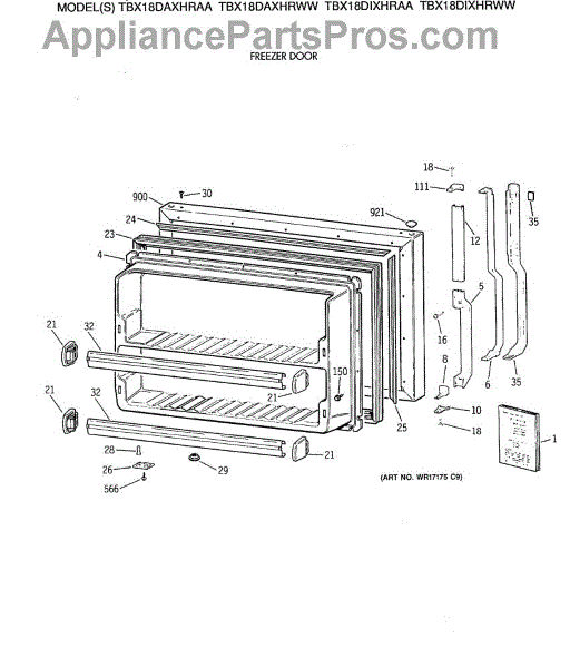 Parts for Ge TBX18DAXHRAA: 01 - Freezer Door Parts