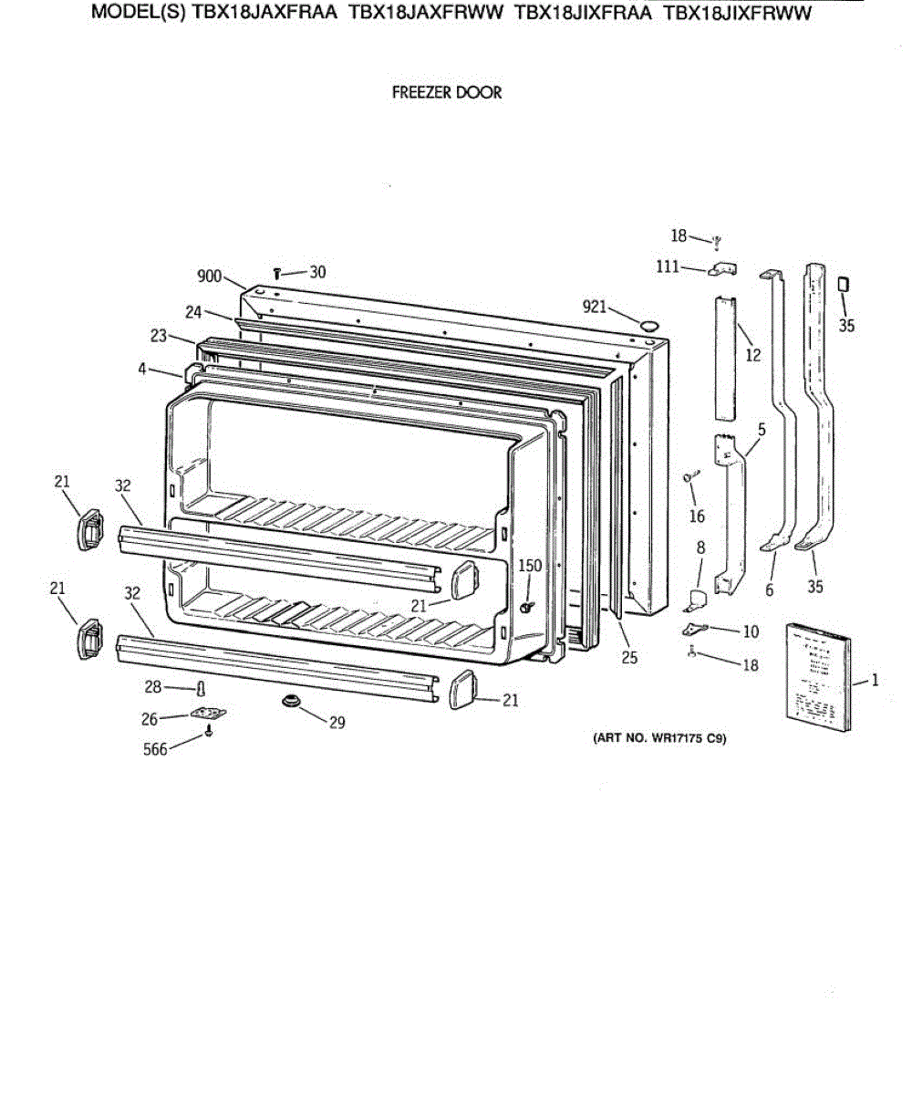 Parts for Ge TBX18JAXFRWW: 01 - Freezer Door Parts